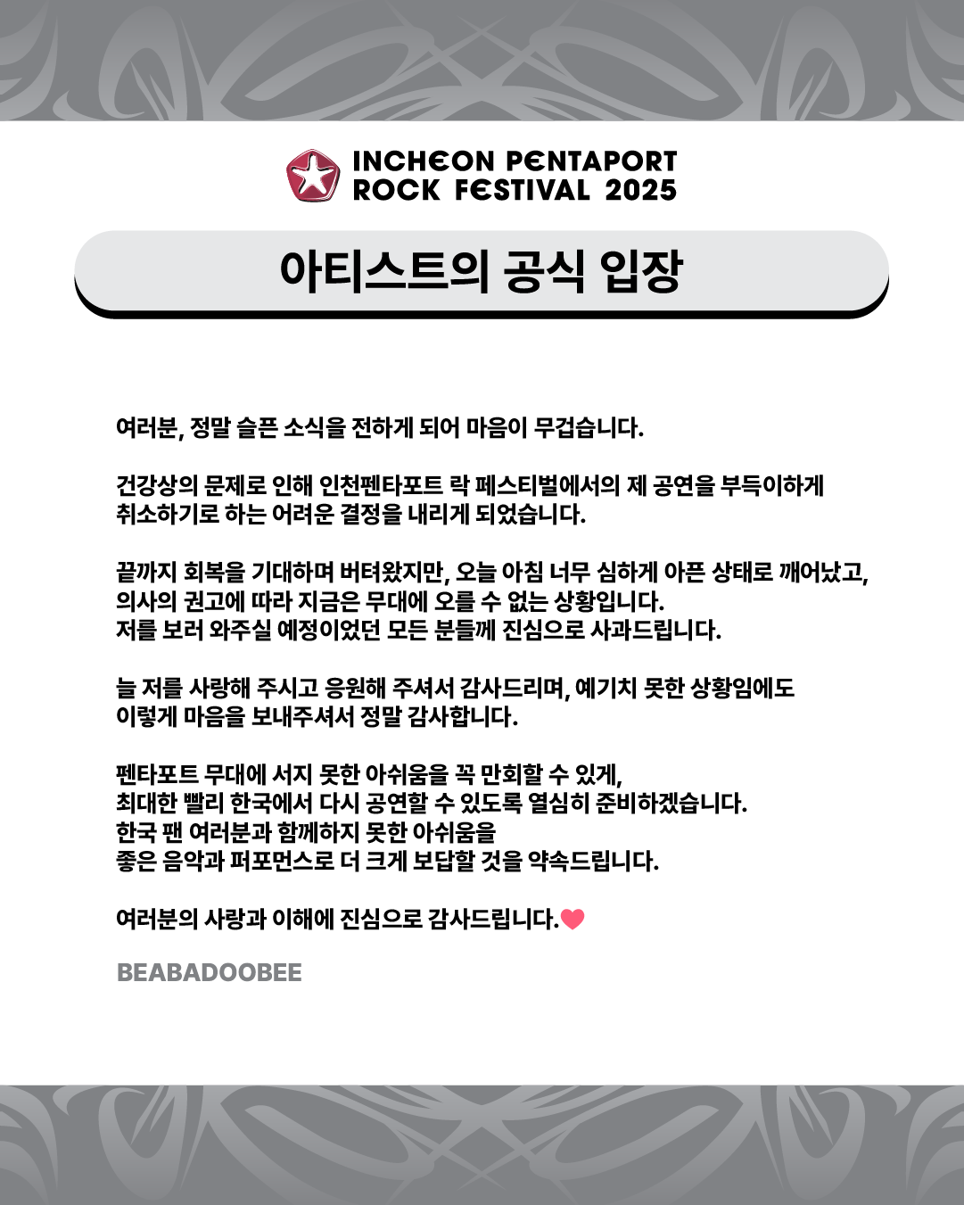 BEABADOOBEE는 한국 팬 여러분께 깊은 사과와 유감을 전하며,