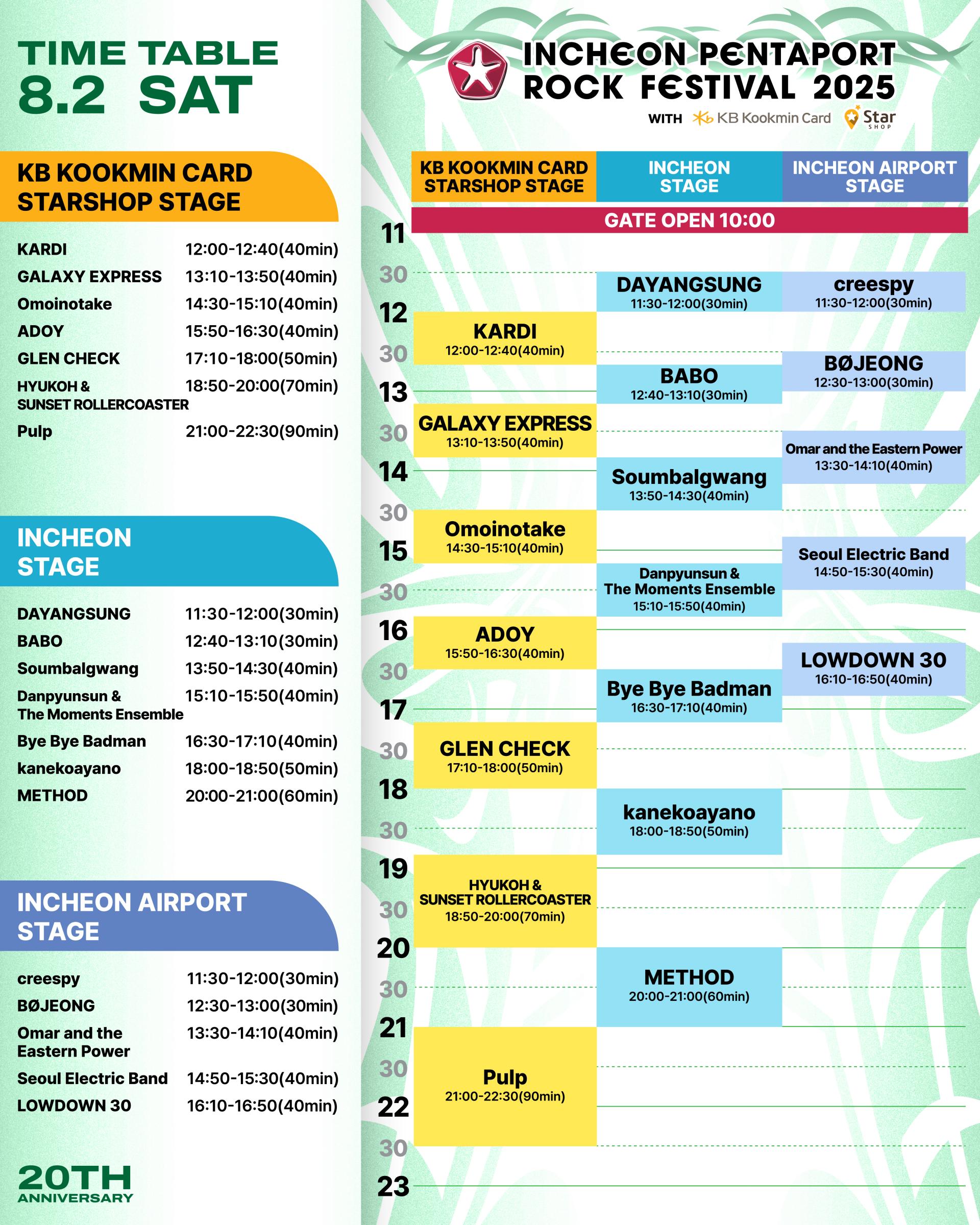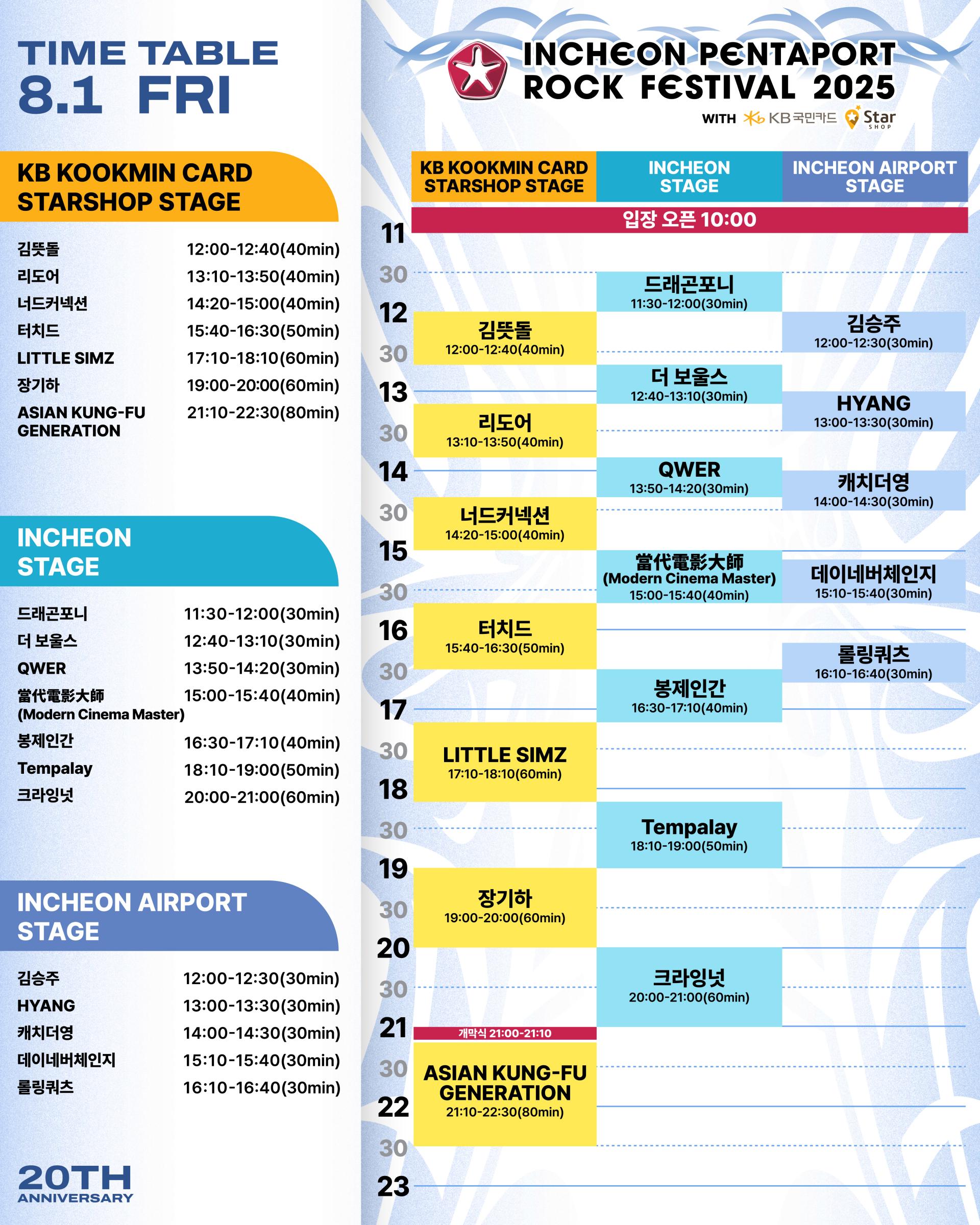 the official timetable for the 2025 Incheon Pentaport Rock Festival!