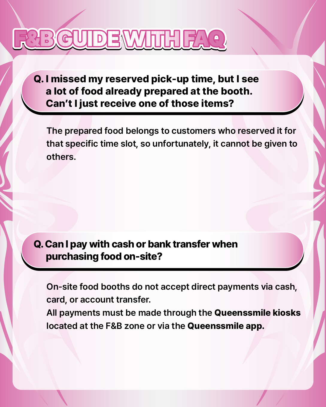 Install the 'Queens Smile' app from the App Store or Google Play Store and reserve food.